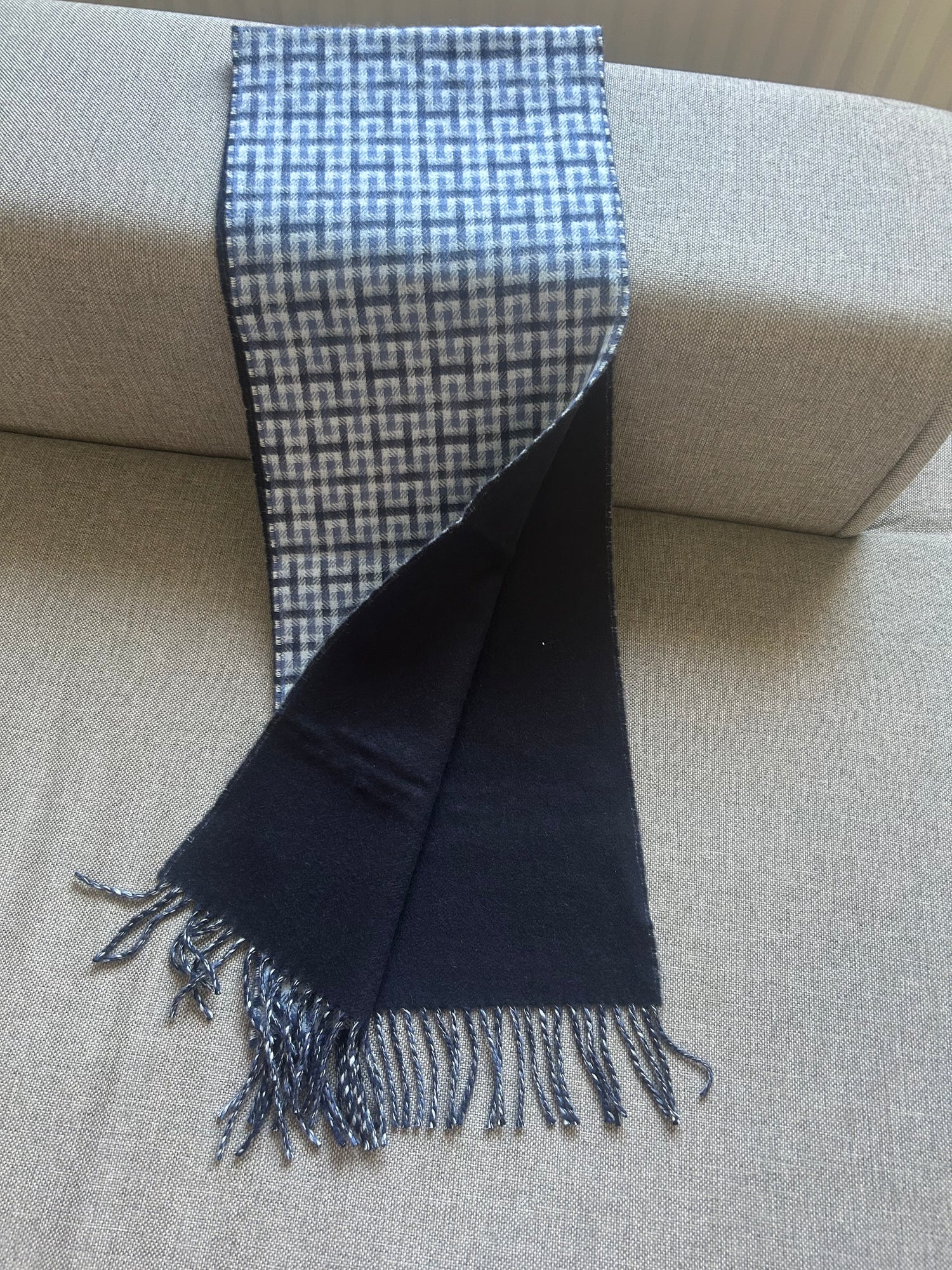 A multitude of “H”s make up the tartan of this jacquard woven scarf.