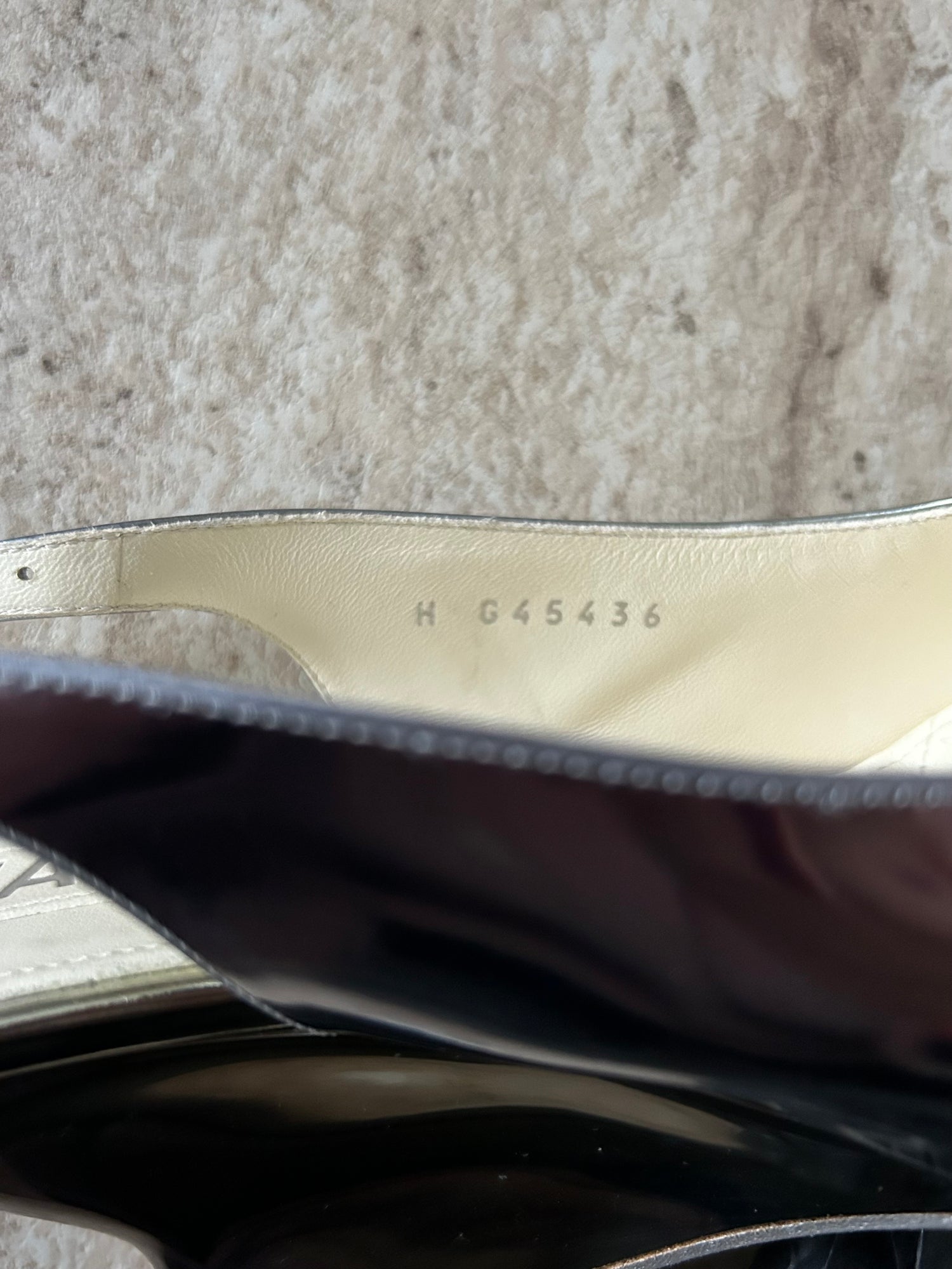 Escarpins slingback chanel en cuir vernis argenté